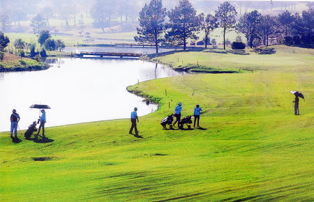 Còn gọi là sân golf Đồi Cù – từ hồ Xuân Hương bạn có thể ngắm 1 mảng xanh mướt